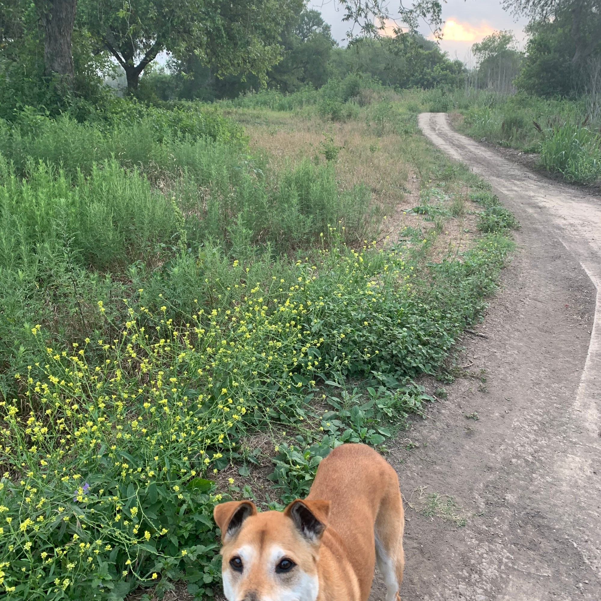 My home is a peaceful little mid-century house that backs into a creek greenbelt in south central Texas. Below are my two dogs Gypsy and Sullivan (not pictured, Queen Circe the witch cat).